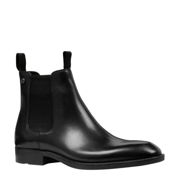 Austin black boots feature a sleek leather upper and an almond toe shape. Double woven elastic gussets and woven pull tabs for easy wear.