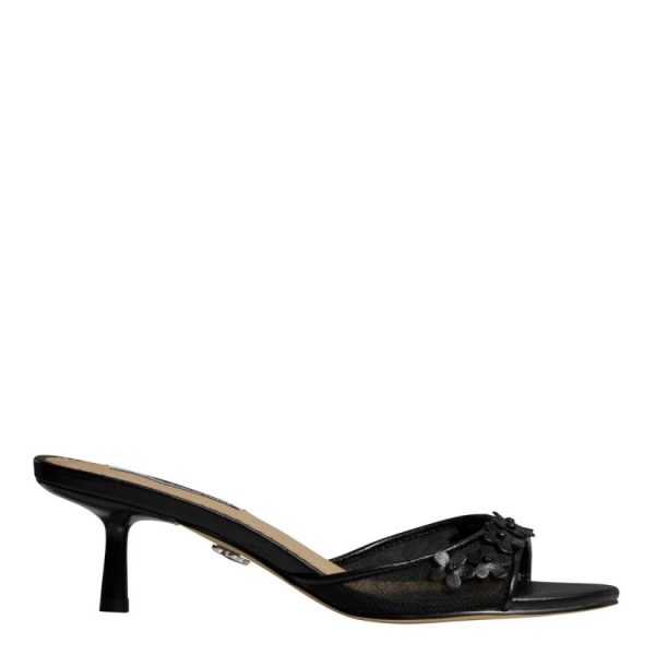 - Open toe, slip-on mule sandals