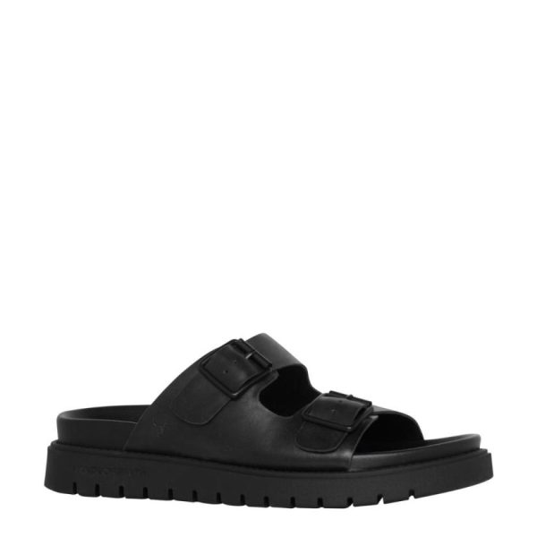 Slip-on men’s sandals, feature a twin-strap design adorned with metal buckles, crafted from heavy-duty oil/wax distressed Pull-up leather. Soft molded P.U footbed that contours to your foot, while the durable T.P.R sole ensures lasting support and traction.